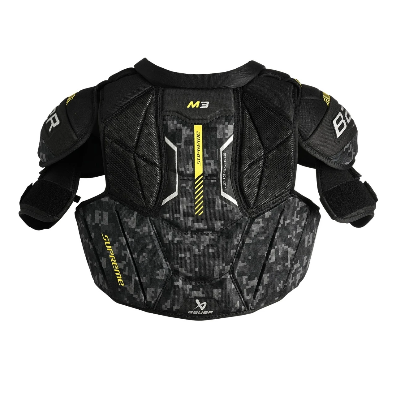 Beim Bauer Supreme M3 Schulterschutz sorgt das Upgrade des beweglichen Brustbereichs für eine noch bessere Passform und mehr Bewegungsfreiheit. Die Schulterkappen mit Low Profile AMP verrutschen nicht und bieten optimalen Schutz. Das bewegliche Brustbein sorgt für mehr Flexibilität. Der Bereich der Wirbelsäule ist mit einer PE Einlage ausgestattet, um den Rücken bestmöglich zu schützen. Der Oberarmschutz ist verstellbar und mit geformtem PE ausgestattet, um auch die Arme perfekt zu schützen.